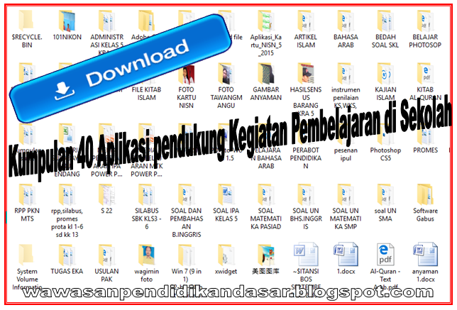 Selamat pagi bapak/ibu guru di seluruh Indonesia.Semoga pada kesempatan pagi ini kita semua masih diberikan nikmat sehat.Pada kesempatan kali ini saya akan berbagi kepada para pengunjung semuanya tentang Aplikasi pendukung kegiatan pembelajaran mulai dari SD samapai dengan SMA.Bagi bapak/ibu guru yang belum lengkap administrasinya mungkin file-file berikut ini bisa membantu para pengunjung untuk melengkapi dan membantu mempermudah pekerjaan kita dengan menggunakan aplikasi.